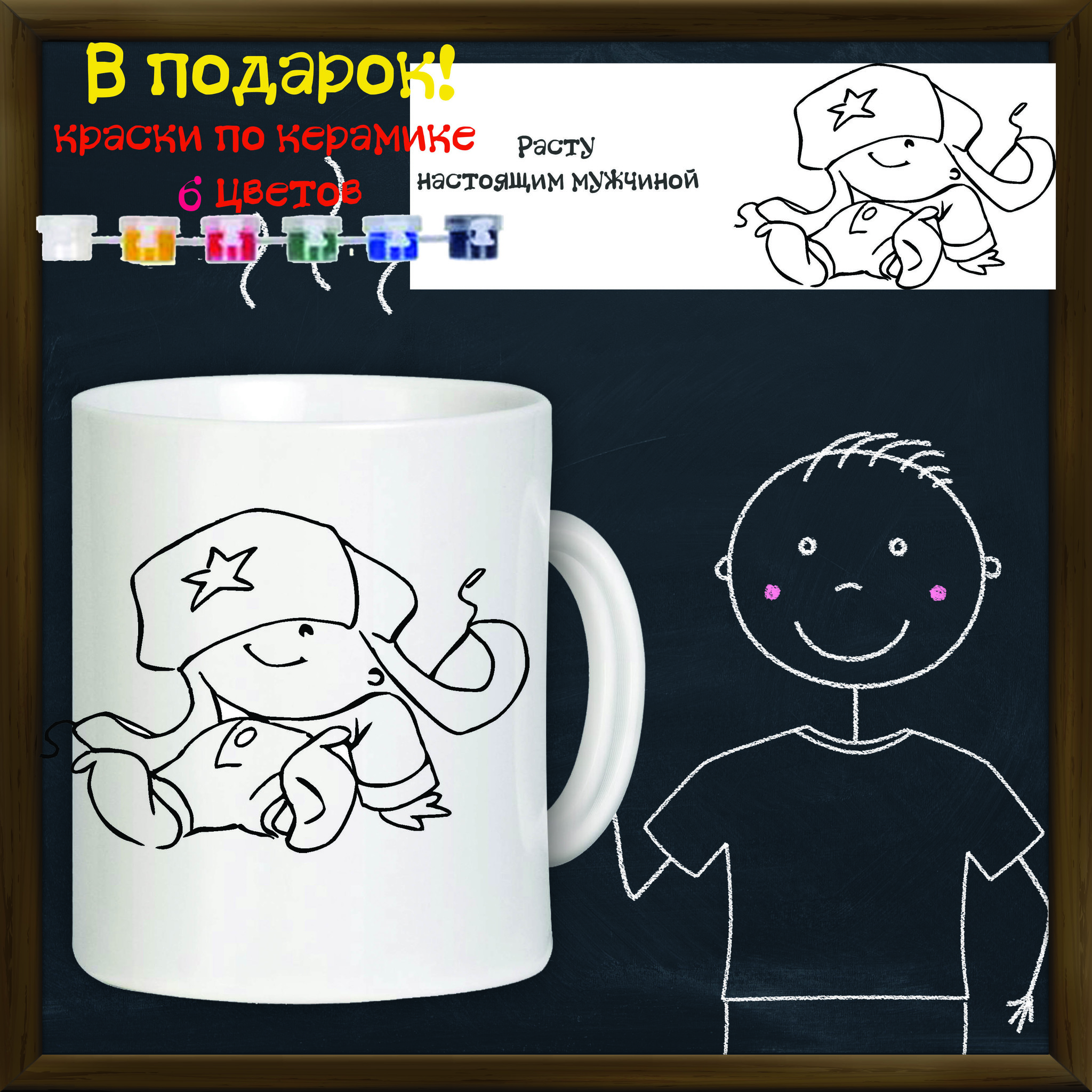 Состав: керамическая кружка, краски по стеклу/керамике 6 цветов, инструкция.