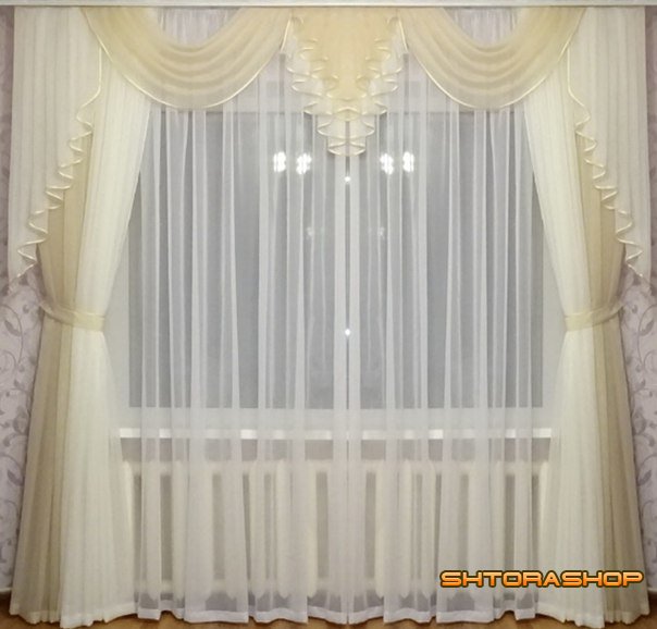 Марго - шторы состоят из: однотонной вуали, комбинация из двух цветов один цвет всегда белый, тюль в комплекте 6 метров. Портьеры в комплетке 4шт, каждая из них по 2 метра, ламбрекен 3 метра выполнен из однотонной вуали. Данный комплект рассчитан на 3-х метровый кариниз